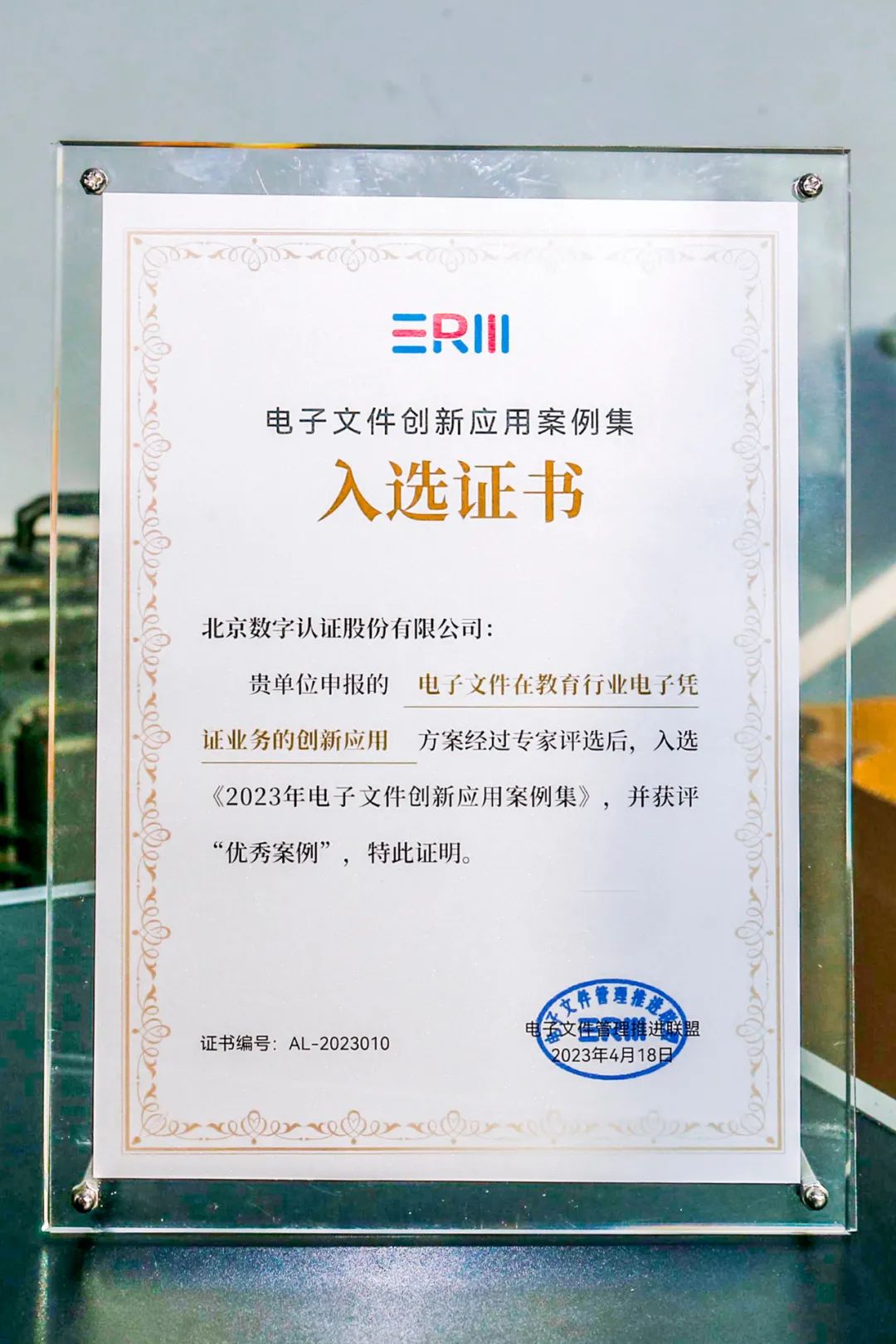 在第六届数字中国峰会召开之际,电子文件管理推进联盟举办了第二届电子文件管理创新论坛,分享电子文件管理应用的新实践。数字认证公司申报的“电子文件在教育行业电子凭证业务的创新应用”成功入选《电子文件创新应用案例》。