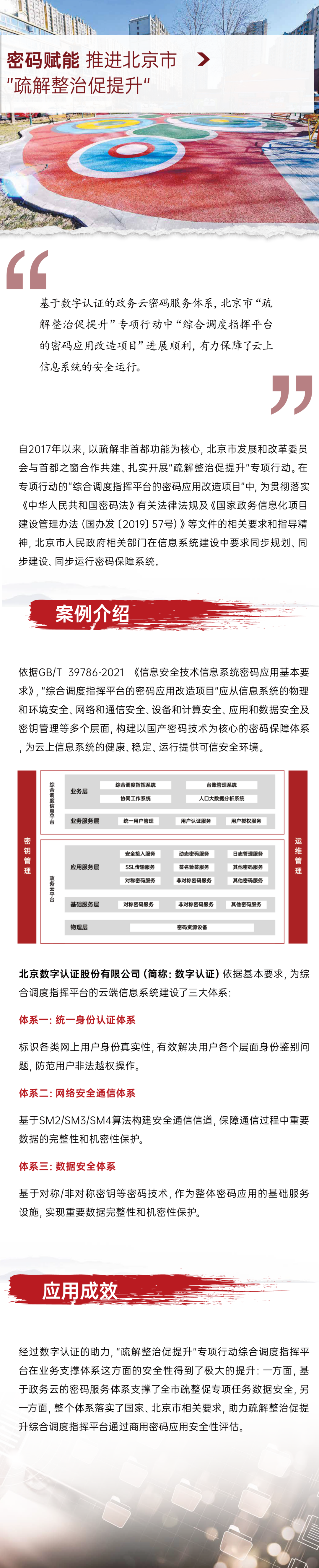 北京市综合调度指挥平台+数字认证 | 密码服务体系助推北京“疏解整治促提升”