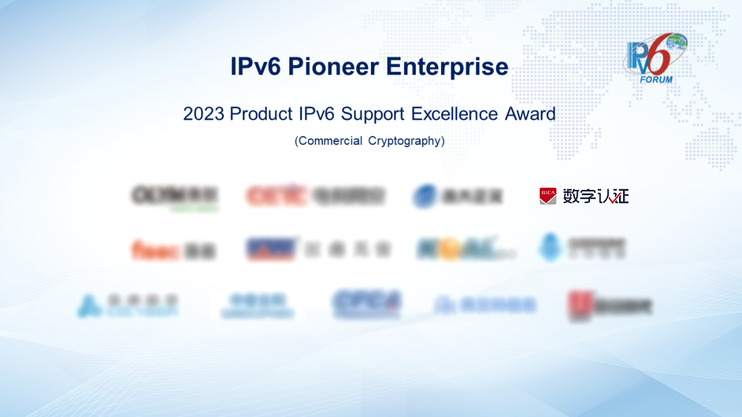 日前,全球IPv6论坛正式公布中国地区2023年度“IPv6 先锋企业”名单,北京数字认证股份有限公司荣获“IPv6先锋企业-IPv6支持度优秀奖”。