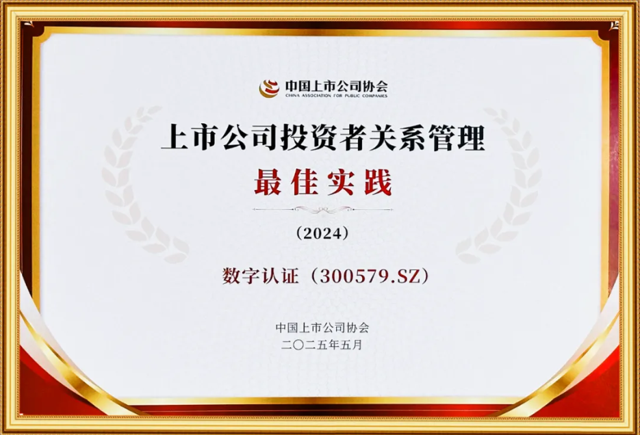 近日,深圳证券交易所公布了2024-2025年度信息披露考评结果,数字认证(300579.SZ)连续第8年获得信息披露考评A级。在北京市属国有控股上市公司中,数字认证与京东方在近8个年度信息披露考评中连续为A。