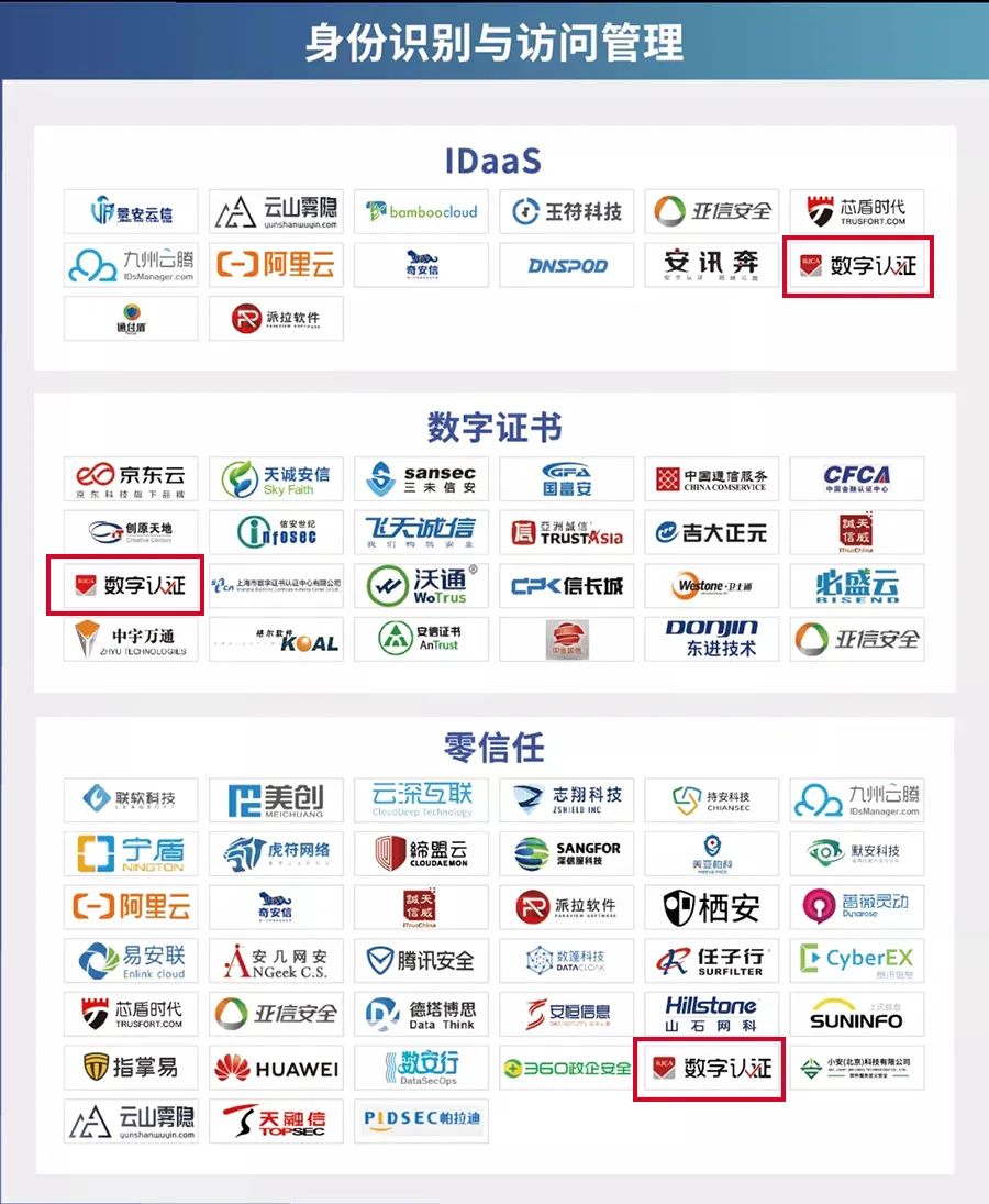 数字认证入围《CCSIP 2021中国网络安全产业全景图》多个细分领域